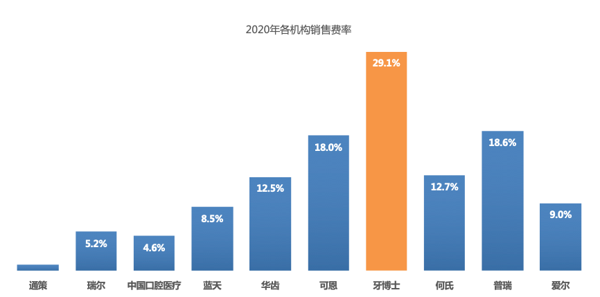口腔醫(yī)療三大成本,耗材、人力和銷售費(fèi)用,究竟是哪項(xiàng)過(guò)高蠶食了利潤(rùn)?前面提到牙博士的人力成本屬行業(yè)較低水平,而耗材成本為21.6%,略高于行業(yè)15%的均值,但考慮種植和正畸耗材占比高,這個(gè)水平也是正常范圍。