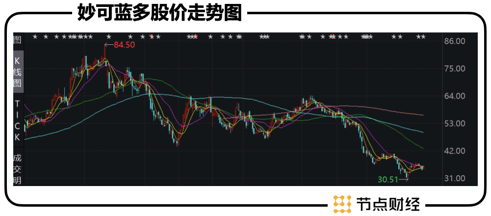 隨后,該股便“跌跌不休”,截至4月6日發(fā)稿時(shí),妙可藍(lán)多股價(jià)僅為35.2元/股,較高點(diǎn)下跌了將近6成。