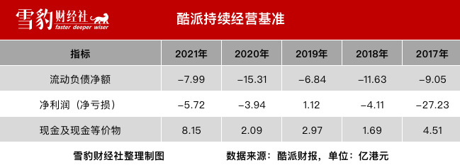 2017年以來,巨額虧損、居高不下的流動(dòng)負(fù)債凈額(流動(dòng)負(fù)債總額減去流動(dòng)資產(chǎn)總額)、現(xiàn)金流不足,令酷派的持續(xù)經(jīng)營(yíng)能力備受質(zhì)疑。