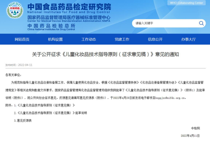 今天,中國食品藥品檢定研究院出臺了一份專門用于規(guī)范、指導(dǎo)兒童化妝品注冊/備案的《兒童化妝品技術(shù)指導(dǎo)原則》(征求意見稿)(下稱《指導(dǎo)原則》)。