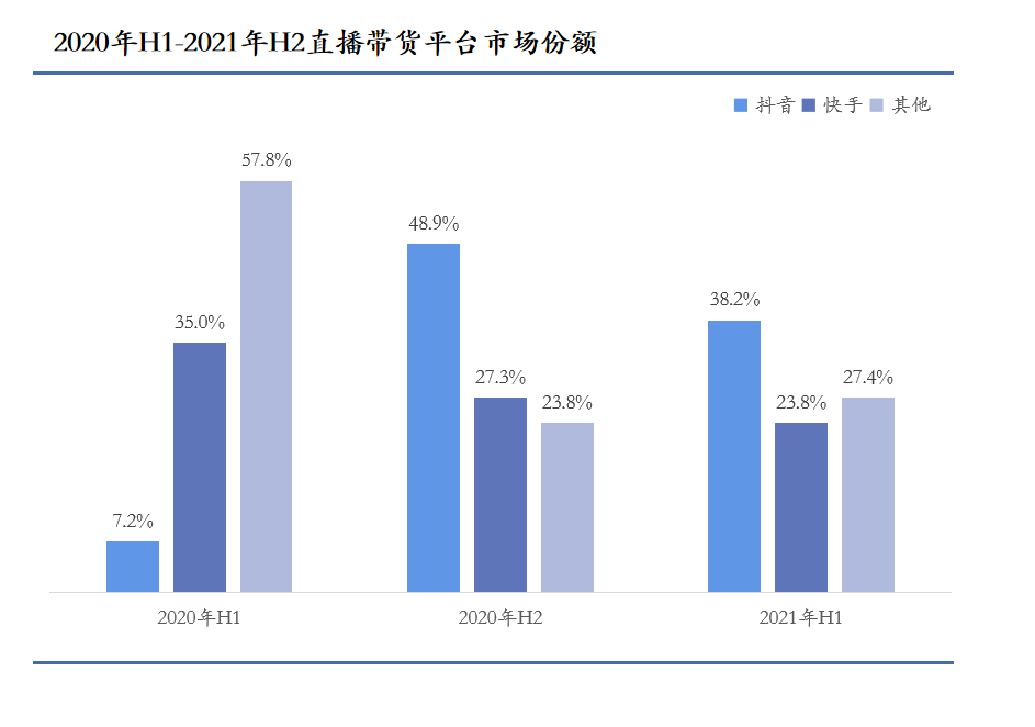 另外,我們并不認(rèn)為在線音樂平臺的直播并不具有發(fā)展直播電商的優(yōu)勢。首先,目前國內(nèi)的直播電商基本上是被抖音、快手所壟斷。據(jù)《【Fast data極數(shù)】2021中國直播電商行業(yè)報告》,抖音和快手合計在直播電商領(lǐng)域的市場份額在60%以上。在寡頭壟斷下,后來者很難入局。