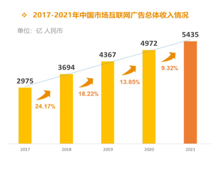 另據(jù)App Growing數(shù)據(jù),2021年Q3全網(wǎng)廣告投放量為3600萬條,投放量出現(xiàn)明顯下滑,已從當(dāng)年7月份的1700萬條下降到9月份的1000萬條以下。綜合考慮疫情對企業(yè)的重創(chuàng)、人們收入的下降、原材料成本的持續(xù)上漲、國內(nèi)互聯(lián)網(wǎng)流量的封頂?shù)纫蛩兀覀冋J(rèn)為國內(nèi)互聯(lián)網(wǎng)廣告增速將會持續(xù)下降。