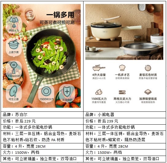 (來源:蘇泊爾、小熊電器旗艦店詳情頁,《每日財(cái)報(bào)》整理)