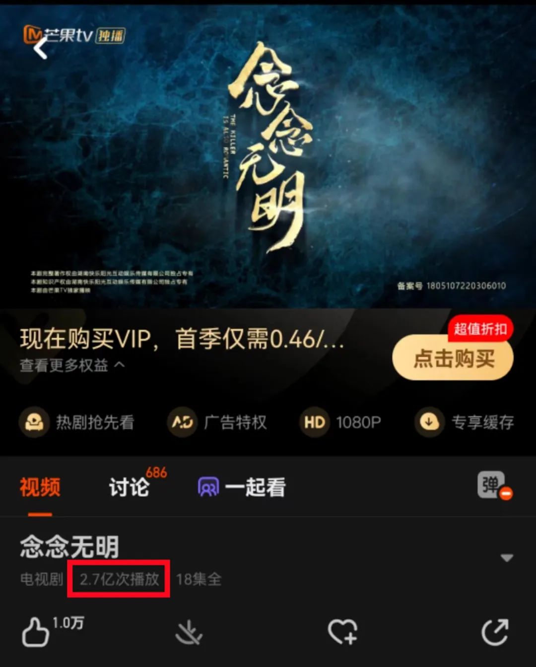這部在芒果TV播出的短劇《念念無明》,日前收官拿下了2.7億播放量,一個放在抖音、快手也相當(dāng)不錯的成績。同時,該劇首日登上平臺搜索第一,從上線以來持續(xù)占據(jù)芒果TV熱度總榜前三,整體數(shù)據(jù)僅次于在播頭部劇《玉面桃花總相逢》。