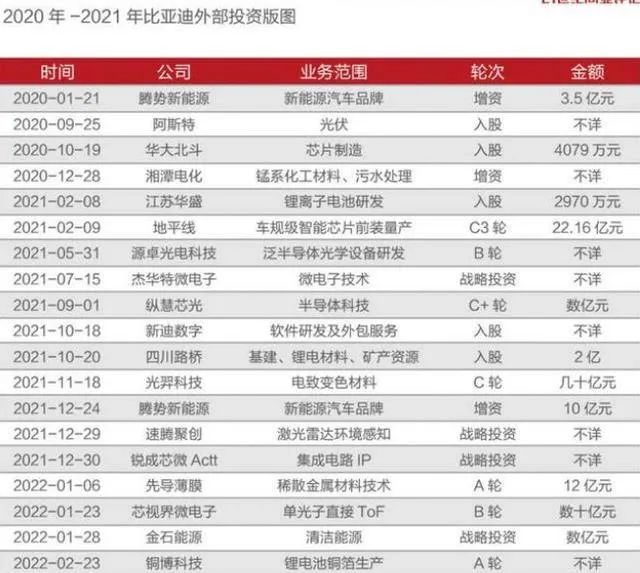 為提升智能化能力,比亞迪還在投資領(lǐng)域不斷加碼。