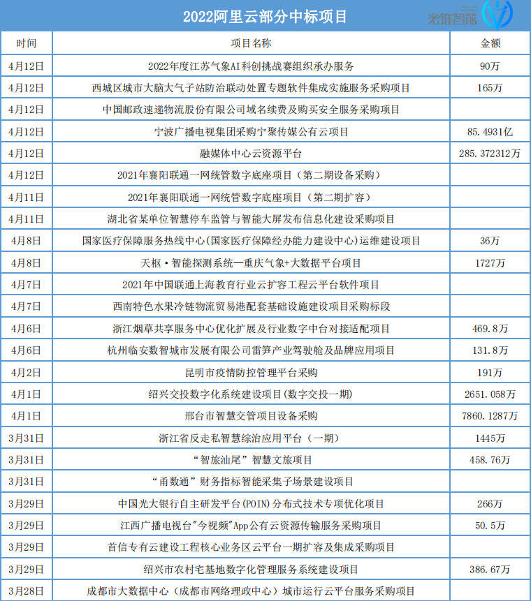 從2022年中標情況來看,阿里云正在主動切入幾大泛政府業(yè)務,包括法院、報社、大數(shù)據(jù)中心、城市大腦、氣象局等。