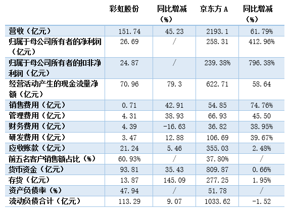 與顯示面板大廠京東方A相比,彩虹股份財(cái)報(bào)各方面表現(xiàn)如何?