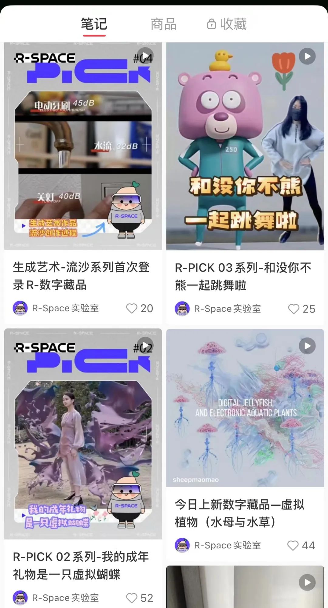 在小紅書上,這些虛擬時(shí)裝都關(guān)聯(lián)著一個開設(shè)了3個月的賬號@R-Space實(shí)驗(yàn)室——該賬號作為小紅書關(guān)于數(shù)字藏品的官方發(fā)聲渠道,不僅會定期更新數(shù)字藏品最新售賣企劃,還會不定期提供數(shù)字藏品以及合作的相關(guān)原創(chuàng)藝術(shù)家和作品的科普。