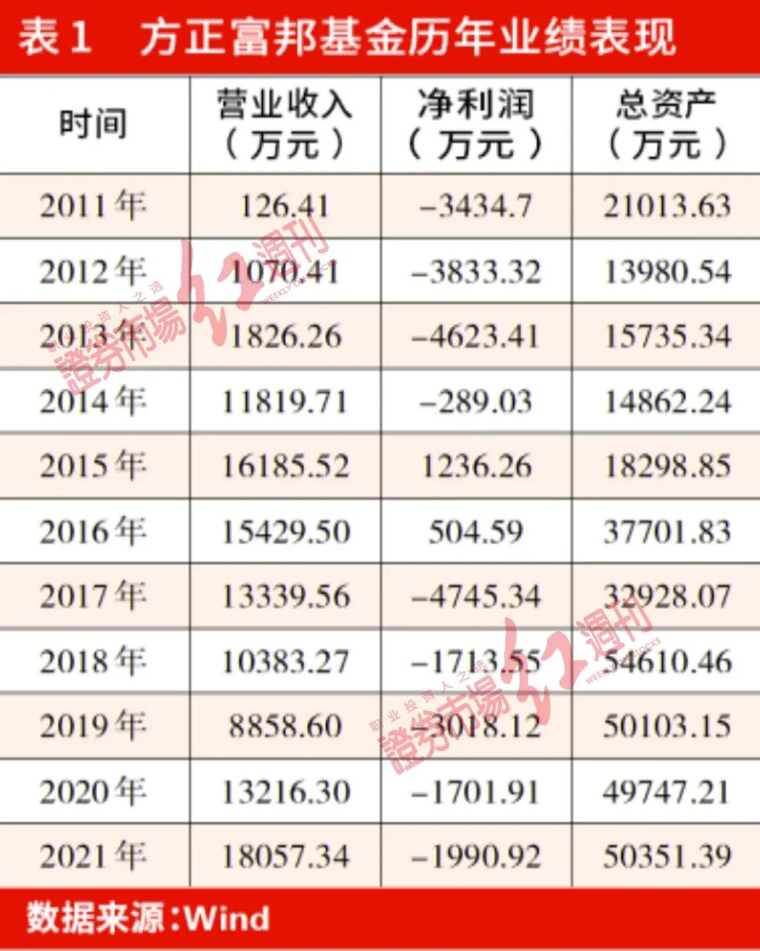 對(duì)此,《紅周刊》查閱方正證券歷年財(cái)報(bào)求證,但方正證券在方正富邦基金成立第一年即虧損給出“主要是因?yàn)槠溟_(kāi)業(yè)時(shí)間較短,籌辦費(fèi)用較高”解釋后,便無(wú)下文。在接下來(lái)的2012年~2021年,方正證券再未就方正富邦基金的業(yè)績(jī)情況做出解釋或說(shuō)明。
