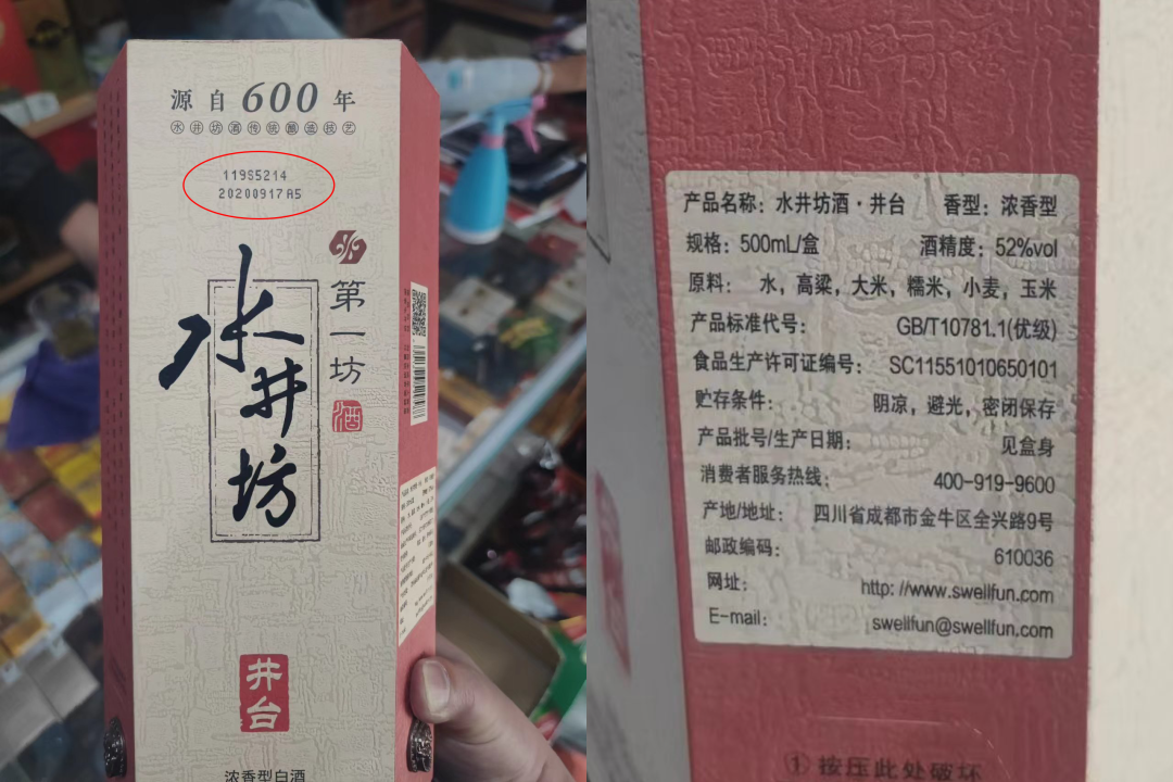 2020年9月17日生產(chǎn)的水井坊·井臺(tái),國(guó)家標(biāo)準(zhǔn)GB/T10781.1(優(yōu)級(jí))