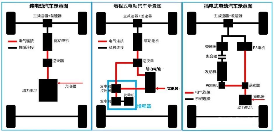 嚴(yán)格意義上來說,增程式實(shí)際上屬于插電式混合動(dòng)力汽車的一種。插混車指的是可以外接充電獲取電能的混合動(dòng)力電動(dòng)汽車,可實(shí)現(xiàn)純電、串聯(lián)和并聯(lián)三種動(dòng)力模式。