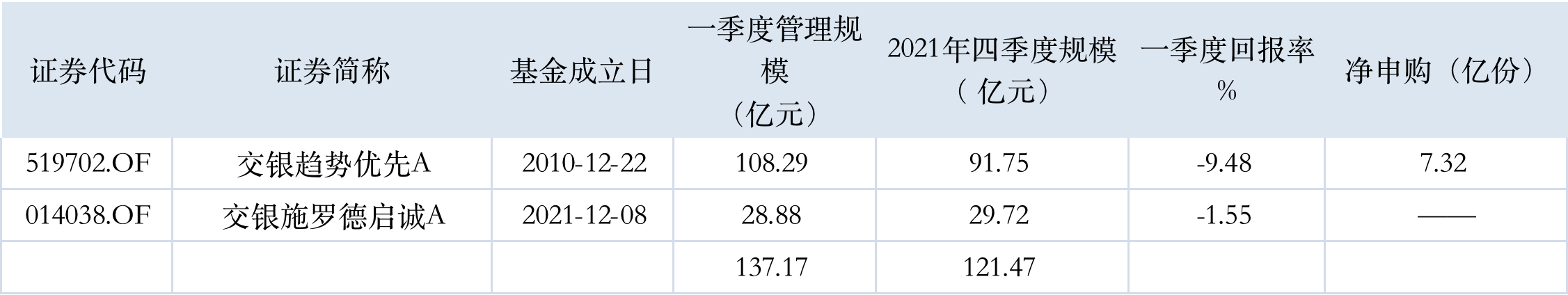 其管理的另一只基金交銀啟誠規(guī)模有所下滑,該只基金目前仍暫停申購,一季度贖回份額為0.65億份。