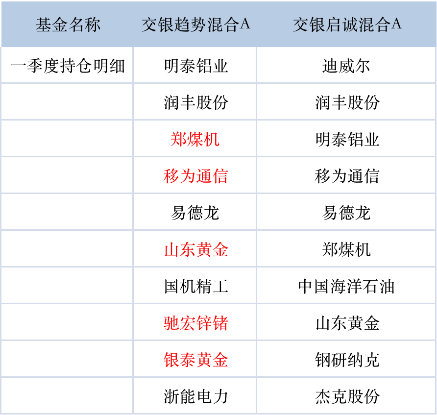 從持倉來看,兩只基金前十大重倉股重合度較高,繼續(xù)保持低股票倉位運(yùn)行。以交銀趨勢(shì)混合為例,一季度股票倉位從去年年底75.70%降至71.16%,并大筆買入明泰鋁業(yè)(601677.SH)、國機(jī)精工(002046.SZ)等個(gè)股。