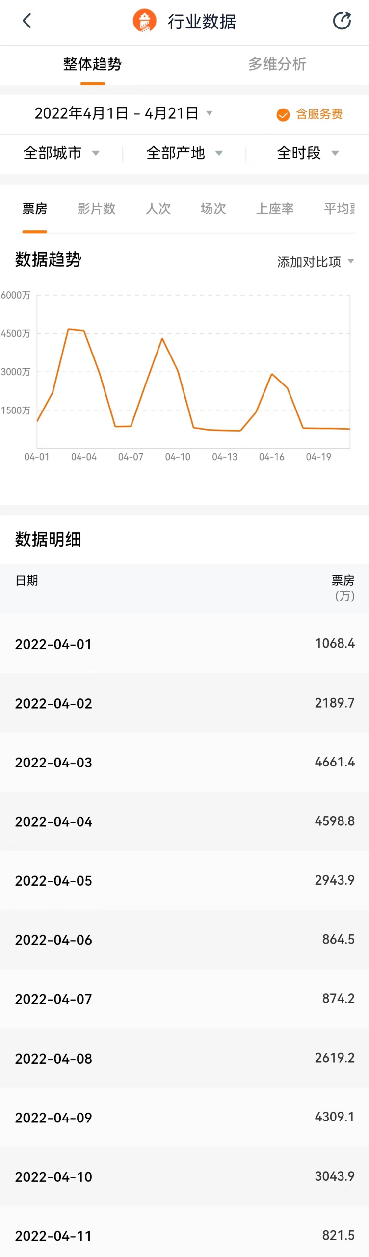 營(yíng)業(yè)影院數(shù)量直接影響著票房收入。據(jù)燈塔數(shù)據(jù),清明假期以來(lái),除上映首周末之外,連續(xù)多日電影大盤(pán)僅保持百萬(wàn)級(jí)水平,不斷刷新2014年國(guó)家電影專(zhuān)資統(tǒng)計(jì)數(shù)據(jù)的新低,水準(zhǔn)僅與2010年持平,工作日3000萬(wàn)的警戒線則完全失效。截止今天,4月便有10天全國(guó)日票房(含服務(wù)費(fèi))跌破千萬(wàn)。