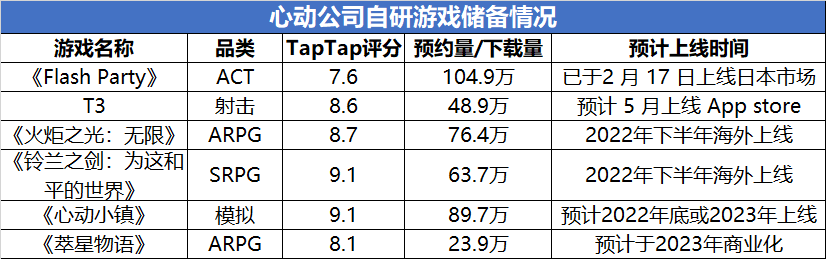 研發(fā)方面,我們重點關(guān)注心動公司現(xiàn)有自研產(chǎn)品以及12款自研游戲的進展。