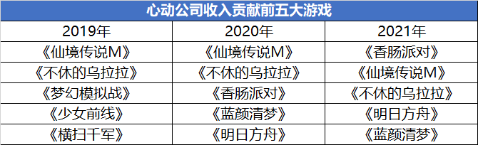 從收入貢獻來看,最近3年,心動公司收入前五的游戲中除了《橫掃千軍》和《仙境傳說M》系自研,其余游戲均是代理產(chǎn)品。