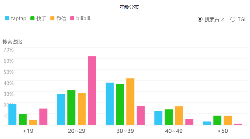 究其原因,DataEye研究院推測,一方面因為TapTap用戶整體偏年輕化,快手和微信用戶年齡偏大,根據(jù)百度指數(shù),TapTap的用戶約50%為1993年以后出生,相應(yīng)地,TapTap用戶付費能力弱于快手和微信;另一方面,廣告業(yè)務(wù)收入增長具有一定滯后性,此外心動公司在廣告投放上相對克制,一定程度上也限制了廣告業(yè)務(wù)收入。