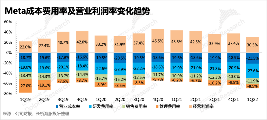 前面幾個(gè)季度海豚君也多次提及,由于高額支出帶來的收支結(jié)構(gòu)變化,Meta可能會(huì)不得不面對(duì)利潤率持續(xù)走低的局面,因此市場對(duì)于 Meta 利潤波動(dòng)情況也越來越關(guān)注。一季度仍然是費(fèi)用端擴(kuò)張影響更大,但我們認(rèn)為未來隨著Reels的商業(yè)化加快,整體毛利率也會(huì)被拉下來。Reels的變現(xiàn)模式,相比傳統(tǒng)廣告,存在一筆內(nèi)容創(chuàng)作者的分成費(fèi)用。