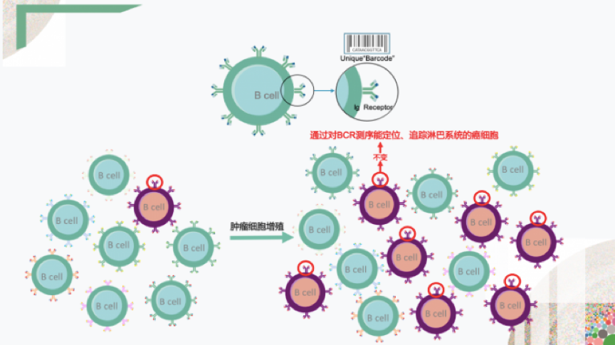 與流式細(xì)胞術(shù)相反,NGS-MRD則是通過“內(nèi)里”去識別腫瘤細(xì)胞。大家都知道,腫瘤的發(fā)生,主要因為基因?qū)用娣肿赢惓?如融合、突變、重排)等導(dǎo)致的。例如,淋巴細(xì)胞的基本特征之一是T細(xì)胞中TCR基因和B細(xì)胞中Ig基因的重排。