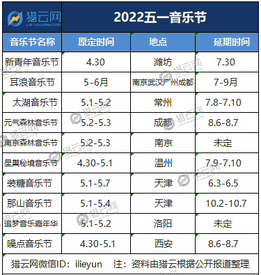 設(shè)想總是美好的,4月中旬原本25場(chǎng)演出相繼宣布因疫情原因延期,僅剩南京森林音樂(lè)節(jié)、元?dú)馍忠魳?lè)節(jié)、太湖音樂(lè)節(jié)、星巢秘境音樂(lè)節(jié)還在堅(jiān)守,但也在4月下旬紛紛發(fā)布公告表示延期。從延期的25場(chǎng)音樂(lè)節(jié)來(lái)看,選擇延期的音樂(lè)節(jié),大部分重新定檔7-9月,并沒(méi)有推到10.1黃金假期。