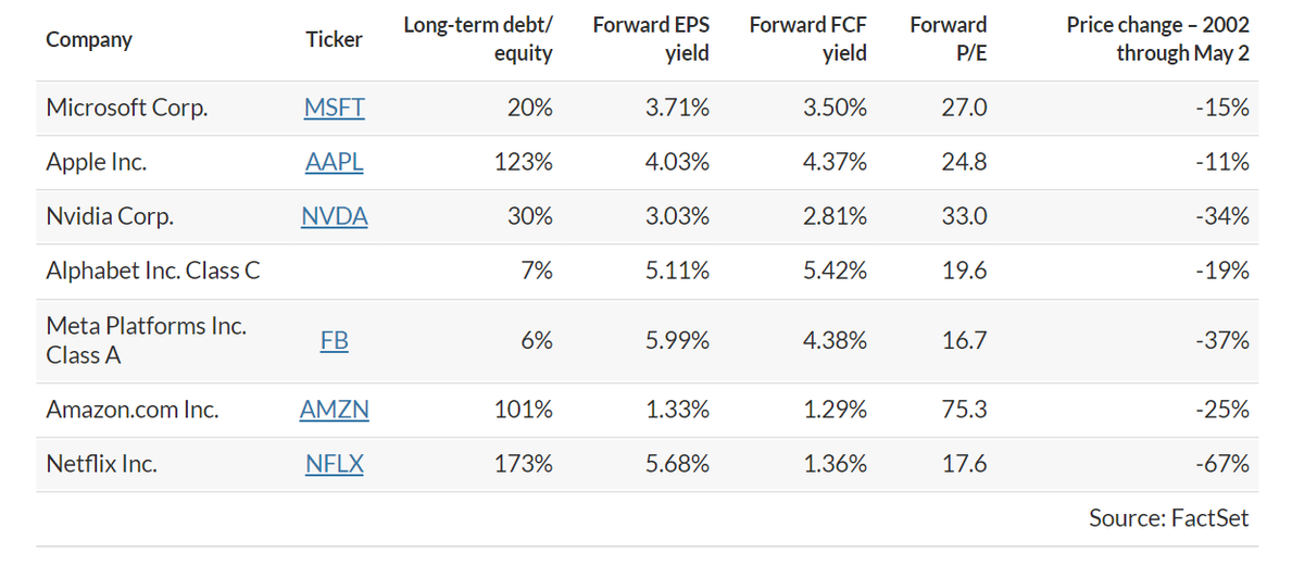 巨頭也在失去穩(wěn)固地位,轉(zhuǎn)而出現(xiàn)分化,正如它們的業(yè)績(jī)一樣。5月3日,由Sean Darby領(lǐng)導(dǎo)的 Jefferies 分析師重申他們?cè)诙路萁o出的建議:投資者應(yīng)該避免全盤參與FAAMNG這樣的科技股巨頭組合,要把焦點(diǎn)放在MANG身上,Meta、亞馬遜和奈飛是有危險(xiǎn)的,微軟、蘋果、英偉達(dá)和谷歌才是后市穩(wěn)定劑。