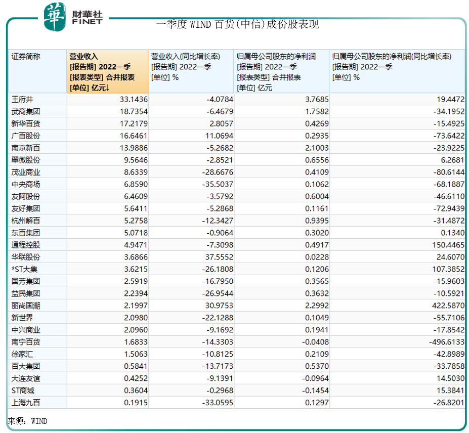 2022年一季度,受新冠疫情不斷反彈、消費(fèi)不振等因素影響,百貨業(yè)態(tài)經(jīng)營(yíng)復(fù)蘇減緩,行業(yè)企業(yè)業(yè)績(jī)表現(xiàn)低迷。