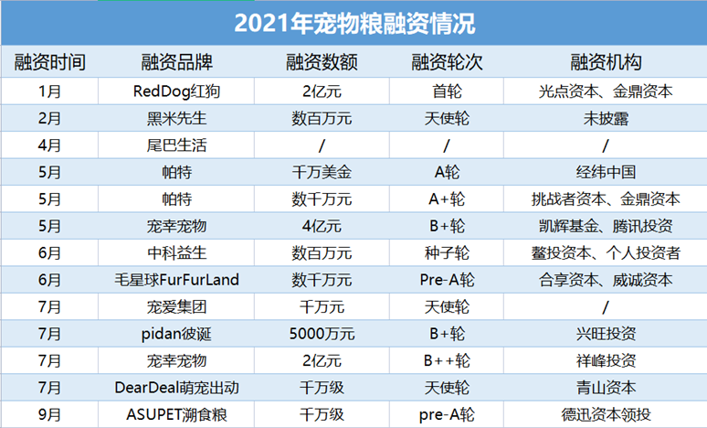在快速增長(zhǎng)的趨勢(shì)下,也吸引了大量資金。近年來(lái),國(guó)內(nèi)寵物食品品牌融資金額已達(dá)75億元。其中,騰訊、青山資本等投資機(jī)構(gòu)已開(kāi)始向?qū)櫸锸称沸袠I(yè)進(jìn)軍。二級(jí)市場(chǎng)的樂(lè)觀無(wú)疑向品牌發(fā)出了激烈競(jìng)爭(zhēng)的信號(hào)。因此,現(xiàn)階段國(guó)內(nèi)寵物食品品牌的快速發(fā)展存在一些野蠻狀態(tài)。