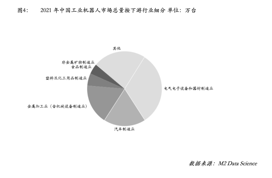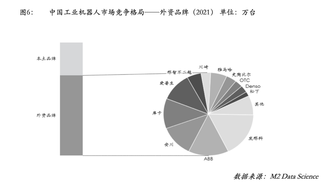 電氣電子設(shè)備和器材制造以及汽車制造業(yè),工業(yè)機(jī)器人的應(yīng)用更成熟、需求更龐大,幾乎被具有先發(fā)優(yōu)勢(shì)的外資品牌壟斷。