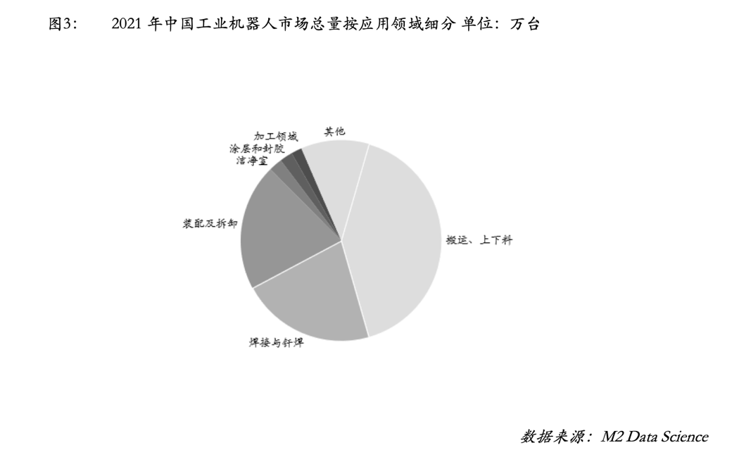 按照應(yīng)用領(lǐng)域,搬運(yùn)與上下料、焊接與釬焊領(lǐng)、裝配及拆卸——這三個(gè)領(lǐng)域占據(jù)工業(yè)機(jī)器人市場(chǎng)80%以上規(guī)模,且增速均在40%以上,也是外資品牌機(jī)器的主要市場(chǎng),國(guó)產(chǎn)品牌占有率尚不足25%。