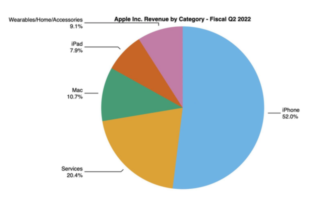 根據(jù)蘋果公司2022年Q2財報數(shù)據(jù)顯示,來自Apple Music、iCloud和App Store費用等服務達到198.2億美元,同比增長17.28%,超過了除iPhone以外其它所有硬件的收入,成為蘋果公司的第二增長曲線。
