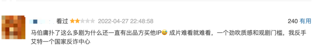 在口碑發(fā)酵的第二天,原著作者馬伯庸還在微博對(duì)劇方的工作和審美表示了肯定。以往觀眾在對(duì)改編作品不滿時(shí)還可以聯(lián)合原著作者一起吐槽,現(xiàn)在這個(gè)通道也被堵死了。翻看評(píng)分網(wǎng)站上的差評(píng),不少評(píng)價(jià)也將矛頭對(duì)準(zhǔn)了馬伯庸的原著。