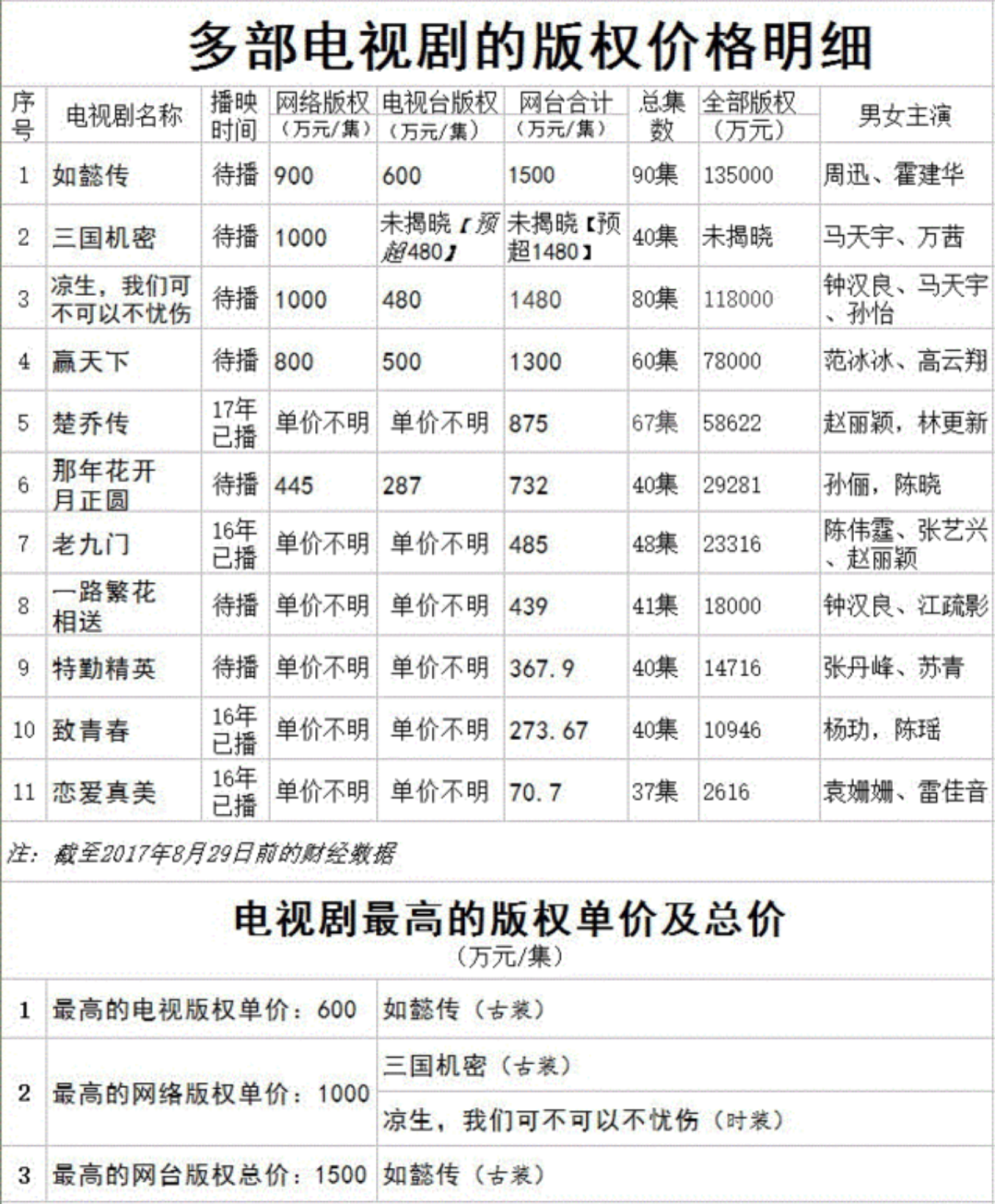 把馬伯庸的IP改編進(jìn)程放置到產(chǎn)業(yè)邏輯和行業(yè)發(fā)展的脈絡(luò)中看,馬伯庸的作品首次得到改編是在2017年,當(dāng)時(shí)正是IP版權(quán)費(fèi)經(jīng)過(guò)經(jīng)過(guò)兩三年的爭(zhēng)相搶購(gòu)溢價(jià)至頂點(diǎn)的一個(gè)階段,出品方唐人影視投資2億用于《三國(guó)機(jī)密之潛龍?jiān)跍Y》的拍攝,看中馬伯庸IP的加持效應(yīng),騰訊則以4億的價(jià)格向唐人影視購(gòu)買下《三國(guó)機(jī)密》的網(wǎng)絡(luò)版權(quán)。