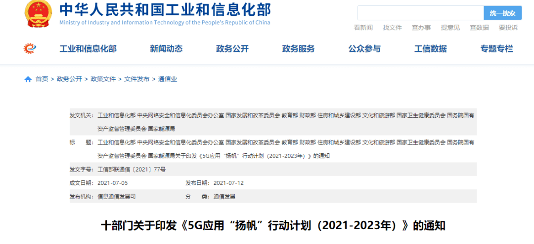 2021年7月工信部為首的10部門下發(fā)的《5G應(yīng)用“揚(yáng)帆”行動(dòng)計(jì)劃(2021-2023年)》中,就著重提到,要求個(gè)人消費(fèi)領(lǐng)域的5G網(wǎng)絡(luò)接入流量到2023年占比超過50%,以平衡運(yùn)營商在5G網(wǎng)絡(luò)的巨額投入。