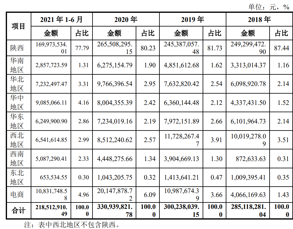 所以招股書提醒道,“如果公司不能有效開發(fā)陜西省外新市場,拓寬更廣闊的產(chǎn)品市場區(qū)域,將對公司未來成長產(chǎn)生一定影響”。