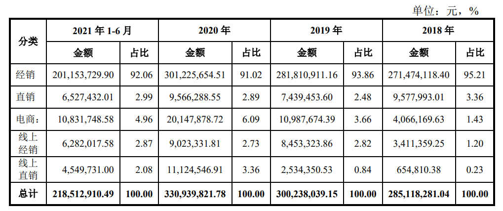 這些銷售網(wǎng)絡(luò),主要集中在陜西本地。為了突破地域瓶頸,推動產(chǎn)品走向全國,近兩年來冰峰飲料開始在電商渠道發(fā)力。不過,電商渠道貢獻的營收,2020年只有6.09%,2021年上半年只有4.96%。