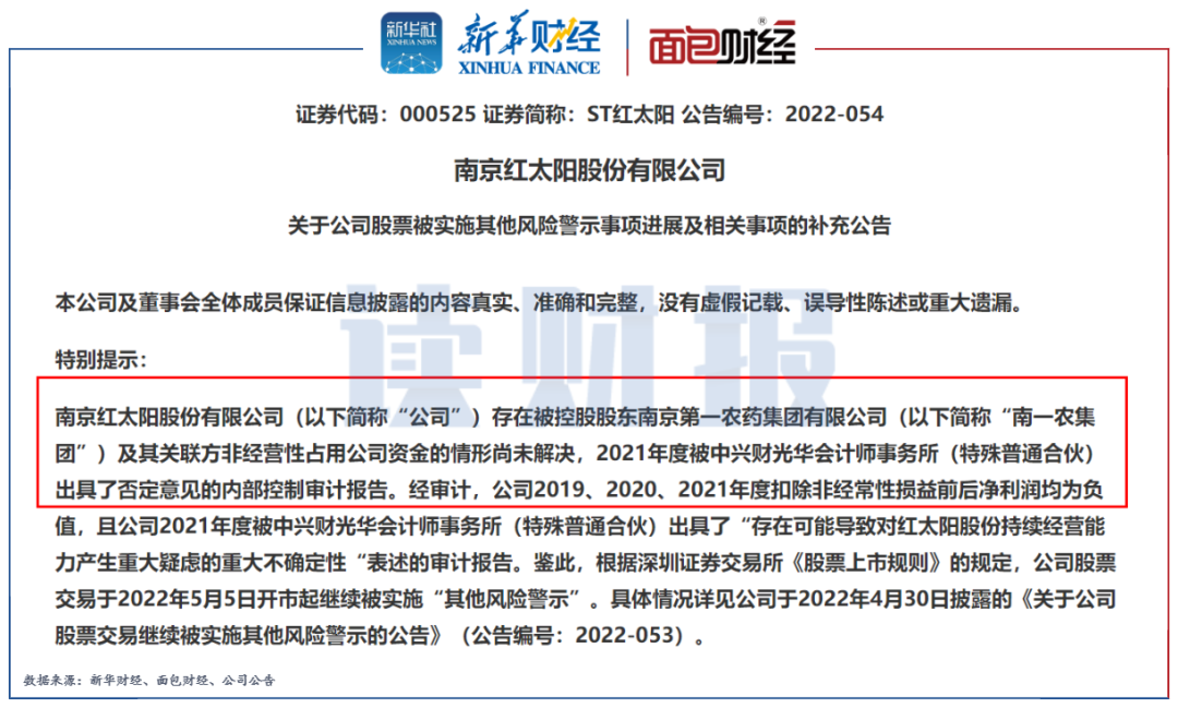 根據(jù)2021年年報(bào),當(dāng)期海通證券和海通資管均身陷與與南京第一農(nóng)藥集團(tuán)有限公司的質(zhì)押式證券回購(gòu)糾紛案,涉案本金分別為3億元和3.2億元,涉及的質(zhì)押標(biāo)的為ST紅太陽(yáng)(證券代碼:000525)。2021年6月,南一農(nóng)公司已被法院裁定破產(chǎn)重整。