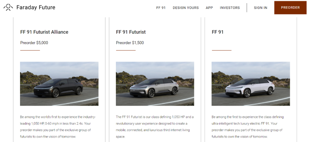 也就是說,雖然FF現(xiàn)在已在其官網(wǎng)上對FF 91開啟預(yù)定,但最后能花200多萬元為其買單的消費(fèi)者或許并沒有多少。