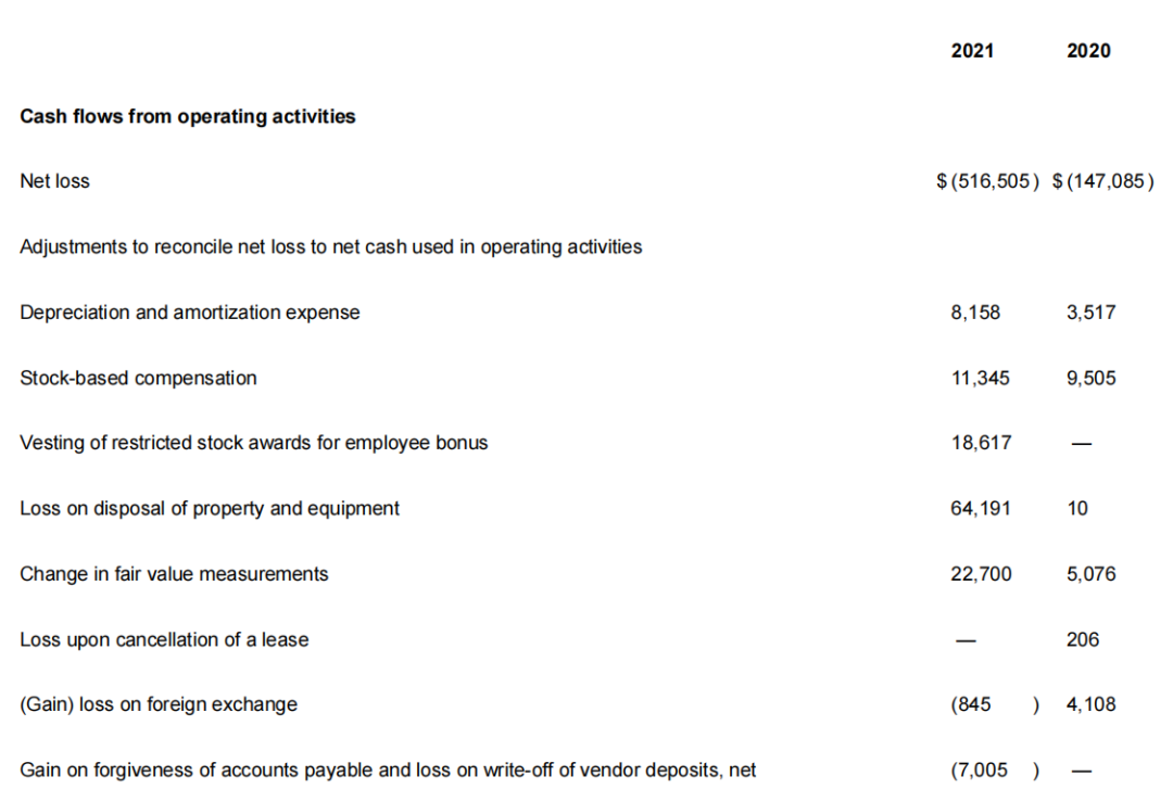 FF還表示,運(yùn)營費(fèi)用的增加還涵蓋了由于重新設(shè)計相關(guān)的FF 91組件而放棄某些正在進(jìn)行的FF 91計劃資產(chǎn)(主要是供應(yīng)商工具、機(jī)械和設(shè)備)相關(guān)的損失。這點可從研發(fā)費(fèi)用來看,2021年FF投入為1.75億美元,同比增長了775%