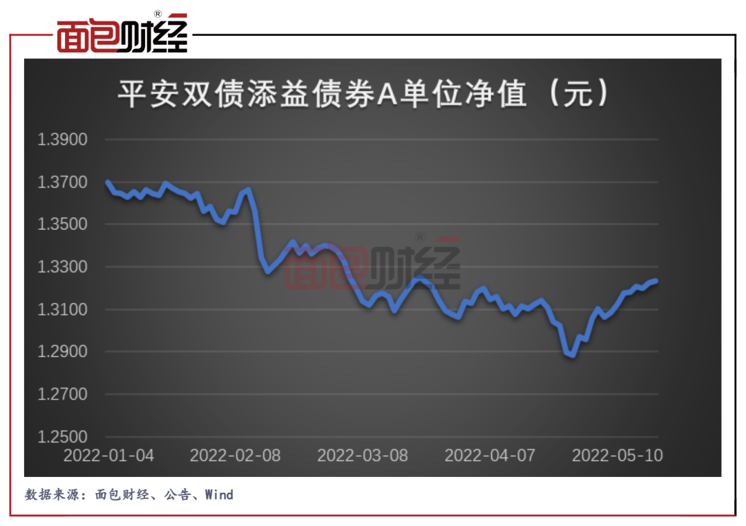平安基金旗下的平安雙債添益?zhèn)疉年初至2022年5月18日回撤3.09%,同類產(chǎn)品中業(yè)績排名墊底。
