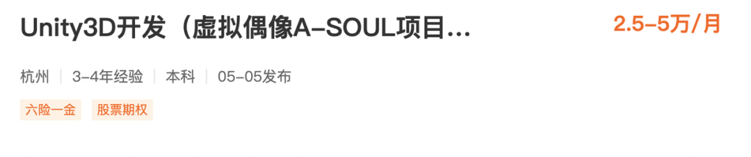 億邦動(dòng)力調(diào)查發(fā)現(xiàn),相對于A-SOUL的中之人,技術(shù)開發(fā)團(tuán)隊(duì)拿著更為優(yōu)厚的薪酬。比如Unity 3D開發(fā)人員的月薪,可以達(dá)到2.5萬-5萬元之間。