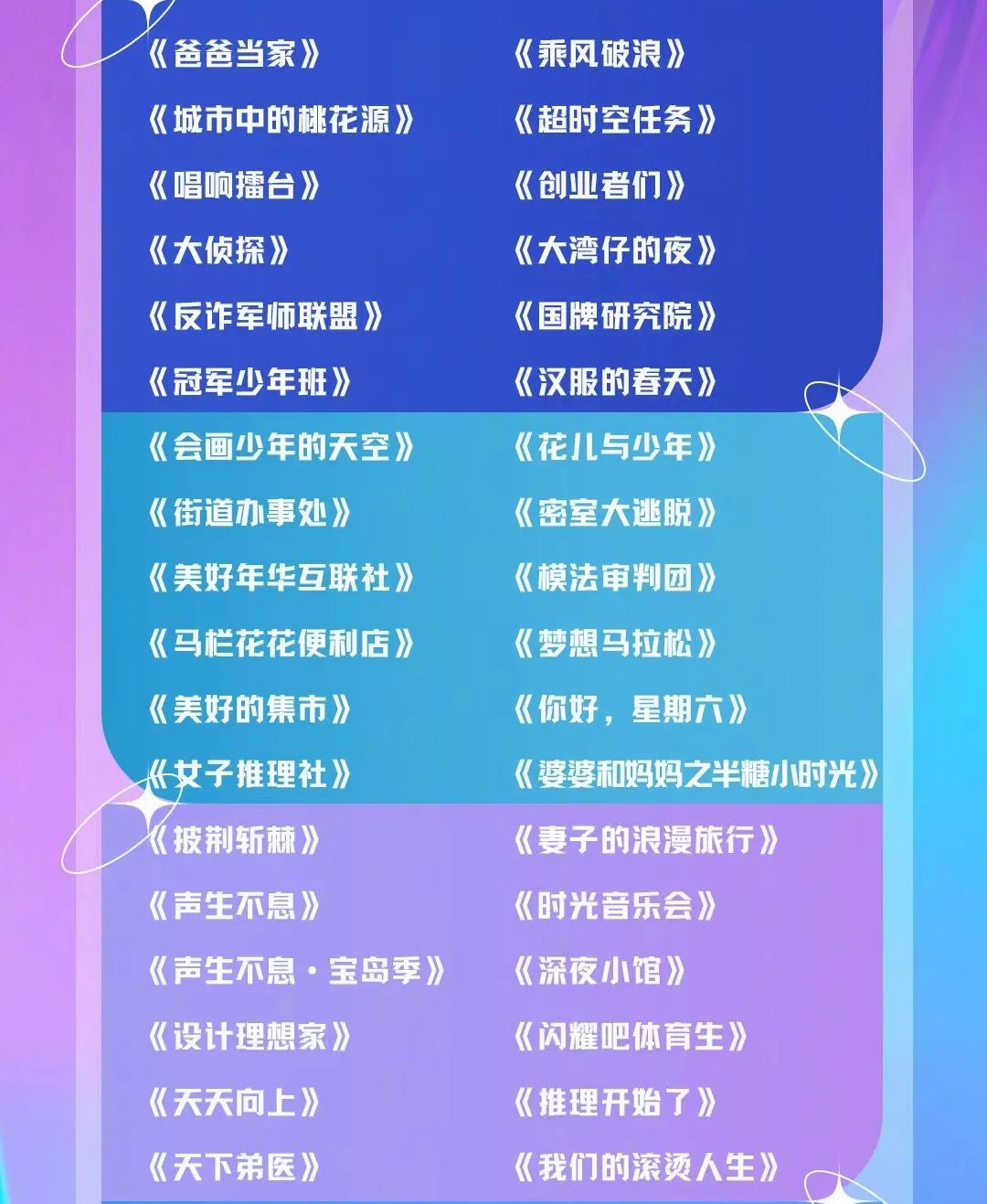 比如說,由去年《披荊斬棘的哥哥》所衍生打造的《我們的滾燙人生》《大灣仔的夜》,均已經(jīng)步入到了第二季的籌備的階段,另外,還將進一步衍生出一檔紀實基層社區(qū)協(xié)警職業(yè)體驗真人秀《街道辦事處》。