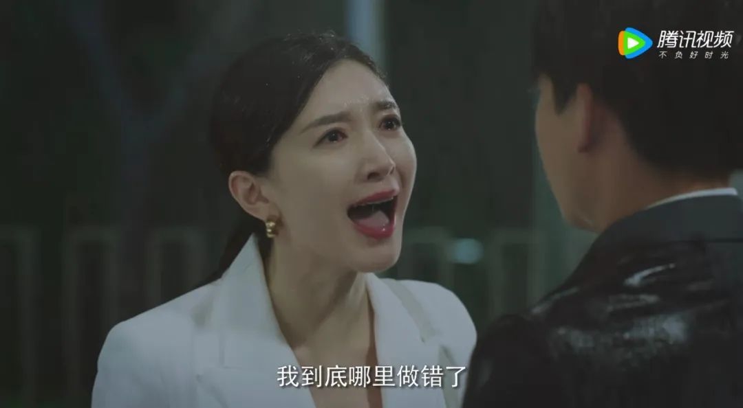 第19集里,她因為彭昱暢吃醋在大雨里爭吵,這應(yīng)該是感情線的重頭戲。結(jié)果江疏影的表情倒像姐妹淘扯頭花,嘴部表情太夸張弄得像血盆大口?!澳隳闹谎劬吹匠颂摱肓?,啊!我沒有見你父母,嗎!我到底哪里做錯,了!”每句臺詞的尾音,江疏影都會咆哮式張大嘴。特別像尖叫土撥鼠模仿秀,是關(guān)上靜音都覺得吵的程度。