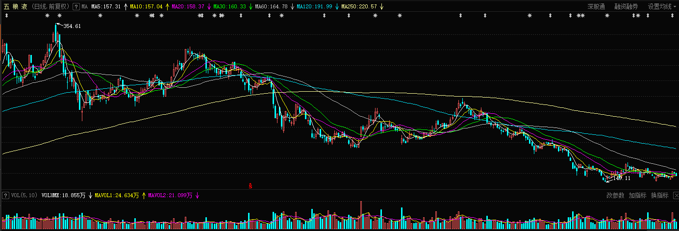 從曾從欽2月18日走馬上任開(kāi)始,到2022年5月24日收盤(pán),數(shù)據(jù)顯示,這期間五糧液總市值下跌1647.13億。而從2022年元旦至今,公司總市值蒸發(fā)2565.61億;而從更長(zhǎng)一段時(shí)間看,比如2021年2月—2022年4月底,五糧液總市值跌幅在TOP5白酒中排名第一。