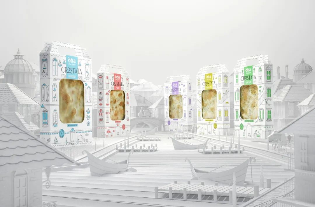受意大利美食啟發(fā),Oba Flatbread Crackers的設(shè)計所有包裝線上都保留了黑色,并使用第二種顏色作為亮點,同時使用意大利建筑風格創(chuàng)造敘事,有效與產(chǎn)品對話。 此外,隱藏在插圖中的驚喜元素增加了消費者在打開包裝時的趣味性(甚至可以作為全家人的玩具)。