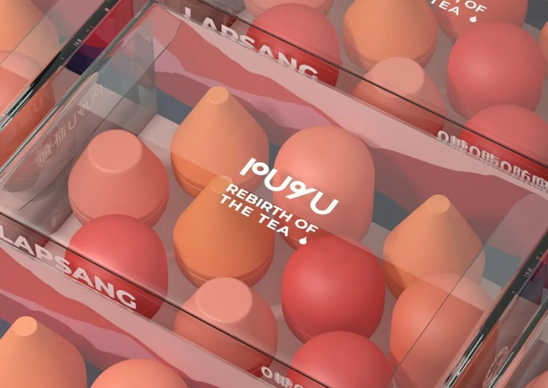 圓形的兩件式外包裝,設(shè)計靈感來自傳統(tǒng)茶壺的形狀,由模壓纖維制成,并染色以代表里面的茶葉種類,包裝上的漩渦模仿了中國茶園的丘陵景觀,紅色標簽可以讓人想起中國印章制作的印章。內(nèi)部含透氣的紡織袋,可重復(fù)使用。