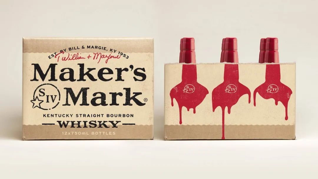 蒸餾威士忌品牌Maker's Mark此次與代理商Turner Duckworth合作,在Maker's Mark的最新品牌更新中,手工浸漬的紅蠟占據(jù)了中心位置?!凹t色滴水”以圖形方式再現(xiàn),并與標簽的棕褐色相得益彰。其他視覺資產(chǎn)是使用傳統(tǒng)的木材蝕刻技術(shù)手工制作的,他們還根據(jù)原始標簽制作了兩種自定義字體以進行刷新。