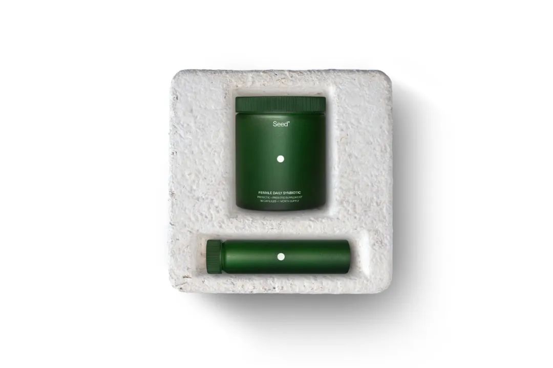Seed是一家生產(chǎn)合生元的公司,產(chǎn)品有助于保持消化道健康和平衡。產(chǎn)品套裝中包含玻璃罐和以可堆肥菌絲托盤。環(huán)保包裝解決方案公司Elevate生產(chǎn)的包裝袋由生物基原材料制成,可堆肥。Green Cell Foam制造的玉米泡沫可生物降解、可在后院堆肥、可食用并溶于水。