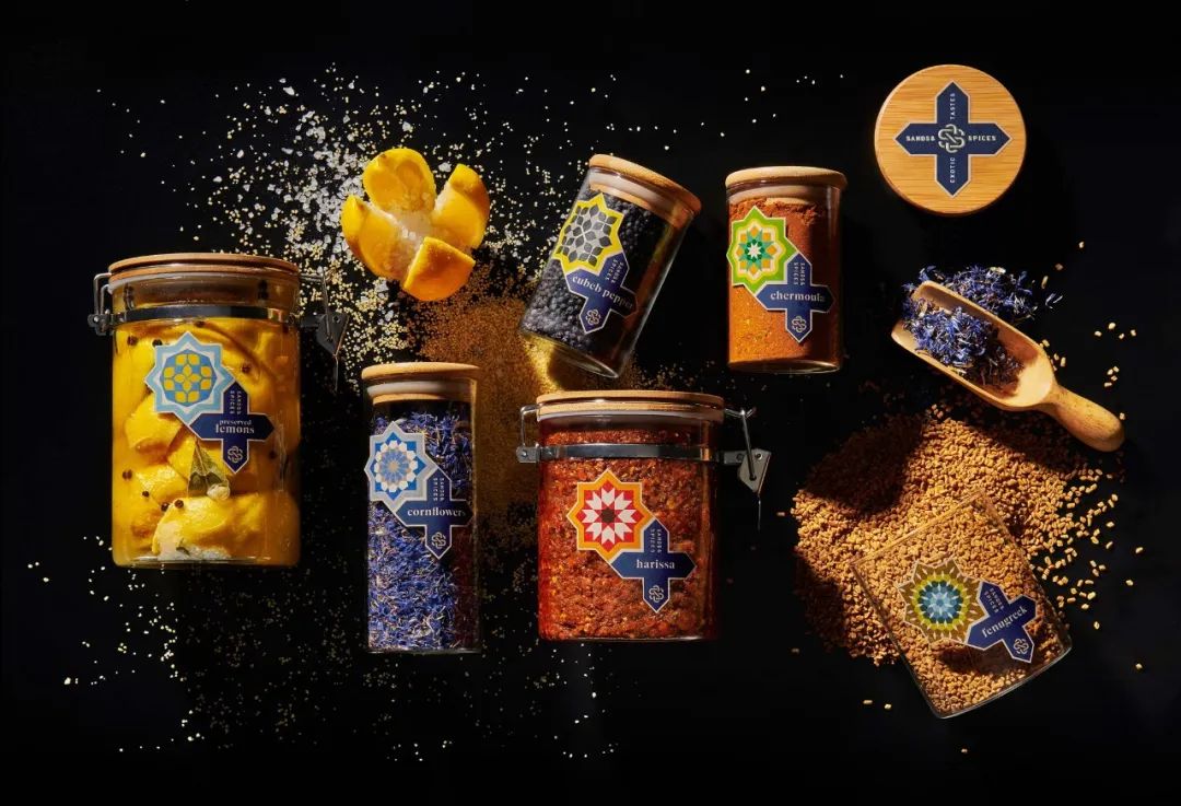 Sands&Spices是摩洛哥香料和調(diào)味品品牌,受摩洛哥沙丘的啟發(fā),設(shè)計揭示了其天然和有機起源的溫暖和質(zhì)地,喚起了沙漠的顏色和氣味以及馬拉喀什集市的土質(zhì)和異國情調(diào),結(jié)合了鑲嵌瓷磚的概念。鑰匙形標簽嵌套和重復(fù),變化多樣。