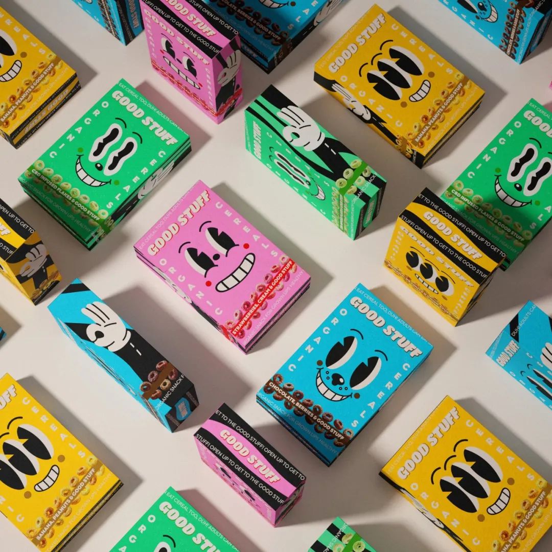 Good Stuff概念設(shè)計結(jié)合了功能性成分和高品質(zhì)風味的谷物,讓成年人回到早餐桌前,享受健康、美味的童年回憶。包裝設(shè)計干凈現(xiàn)代,但又懷舊復(fù)古,讓人想起吃豆人和我們年輕時喜歡的大膽的色彩、漫畫和視頻游戲。