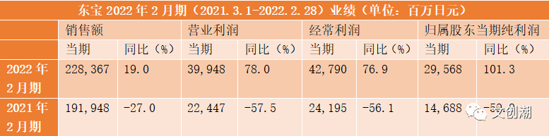 2022財(cái)年,東寶營業(yè)收入與各項(xiàng)利潤全面增長,業(yè)績良好,各項(xiàng)指標(biāo)都恢復(fù)到了接近疫情前的狀態(tài)。
